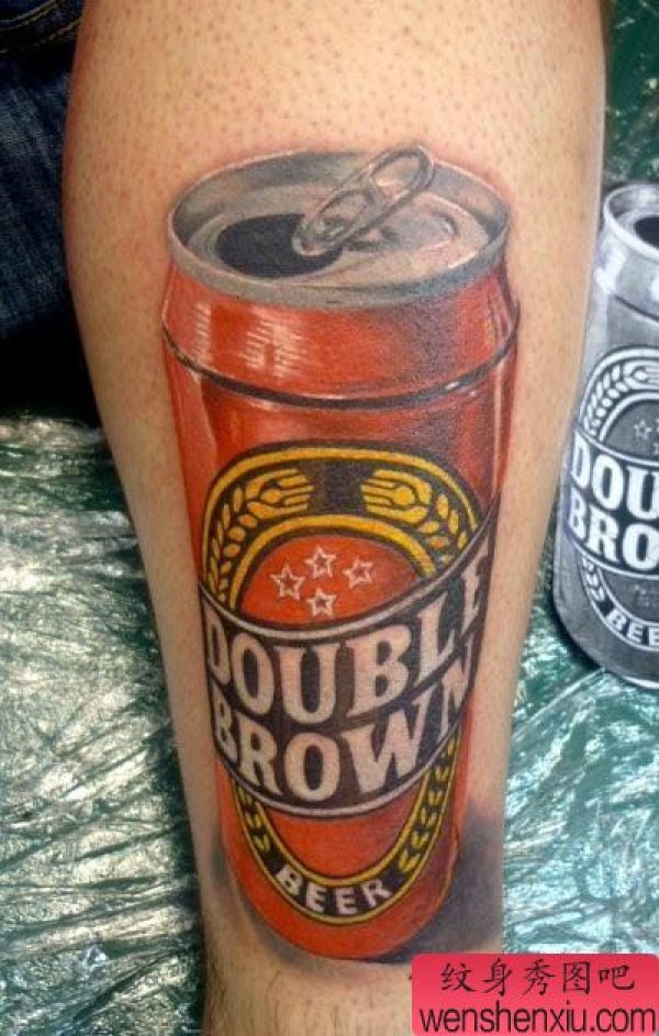 小腿上一张易拉罐纹身图片
