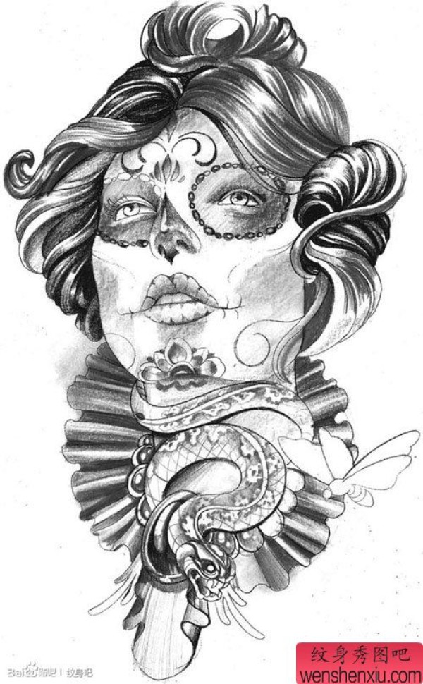 能面万媚纹身手稿_52张日式能剧面具纹身手稿图案素材欣赏