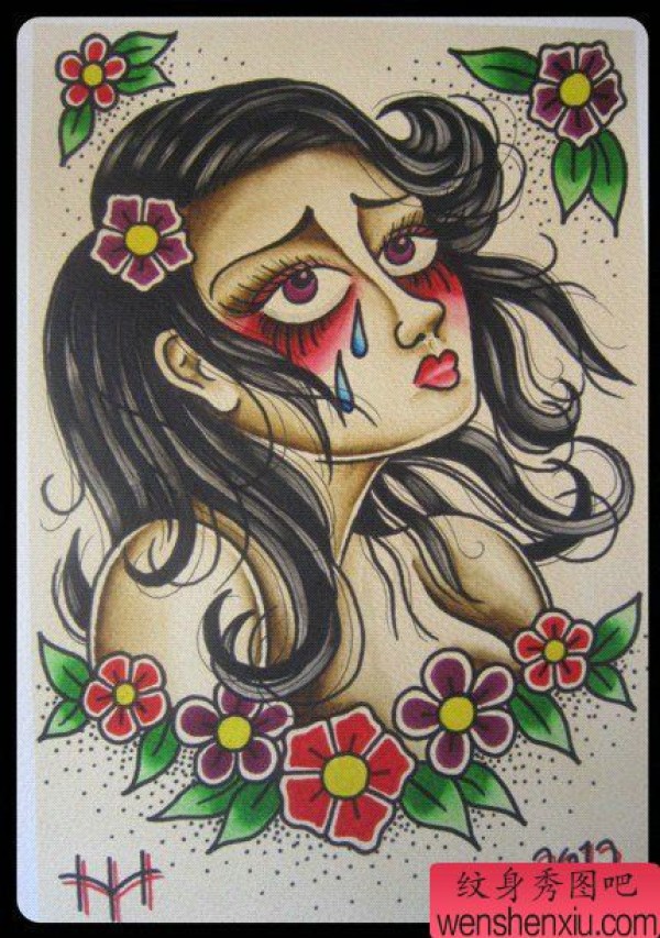 一张唯美经典的美女纹身手稿