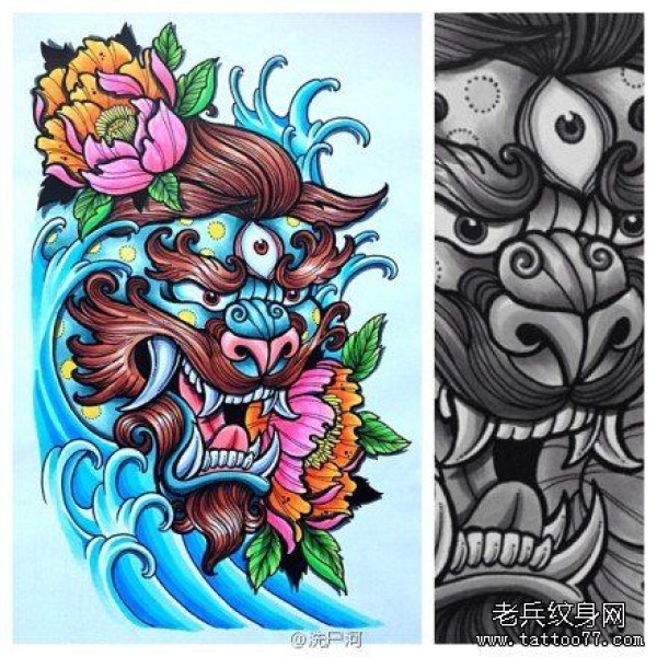 能面万媚纹身手稿_52张日式能剧面具纹身手稿图案素材欣赏