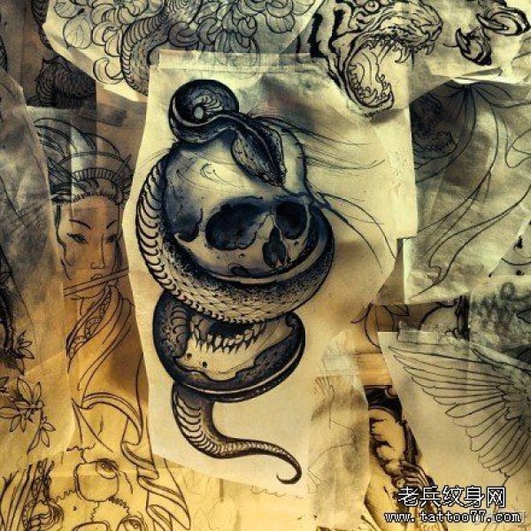 龙纹身手稿_一组老传统黑灰龙手稿纹身图案