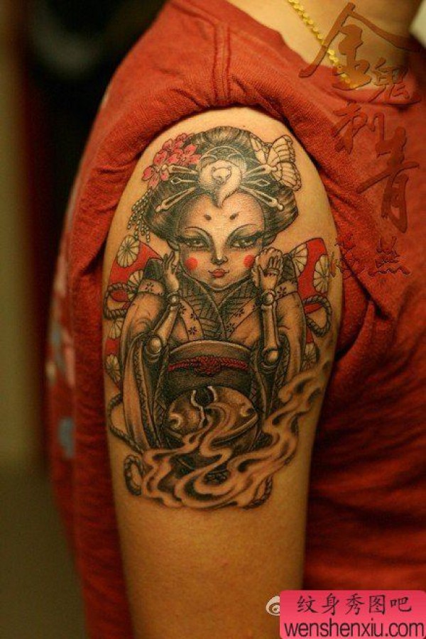 手臂时尚经典的艺妓玩偶纹身图案