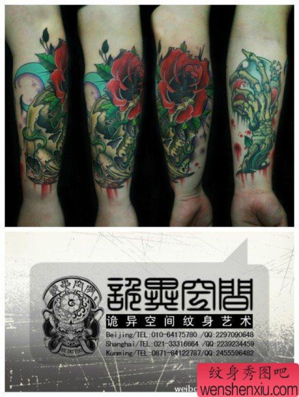 手臂时尚很酷的玫瑰花鬼爪纹身图案