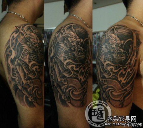 龙纹身手稿_一组老传统黑灰龙手稿纹身图案