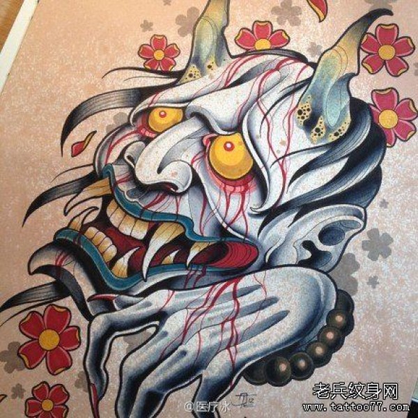 能面万媚纹身手稿_52张日式能剧面具纹身手稿图案素材欣赏