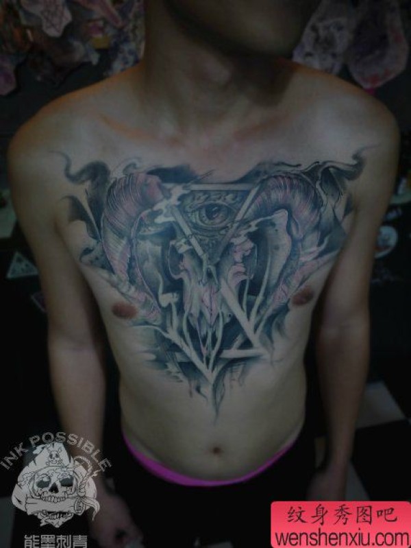 男士前胸超帅很酷的羊头骷髅纹身图案