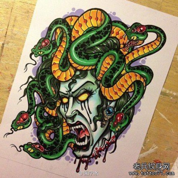 很酷超帅的一new school美杜莎纹身图案
