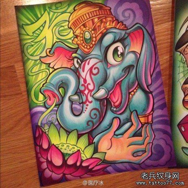 一张可爱经典的象神纹身手稿