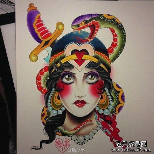 能面万媚纹身手稿_52张日式能剧面具纹身手稿图案素材欣赏