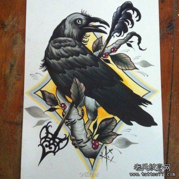 经典时尚的一张乌鸦纹身手稿