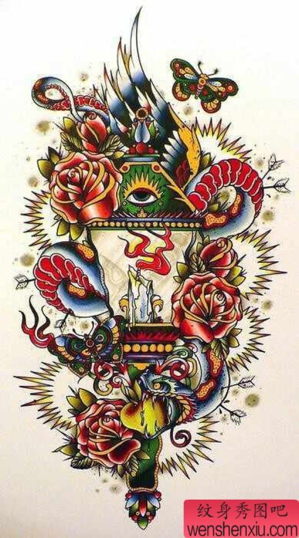 时尚很帅的一张new school蛇上帝之眼纹身手稿