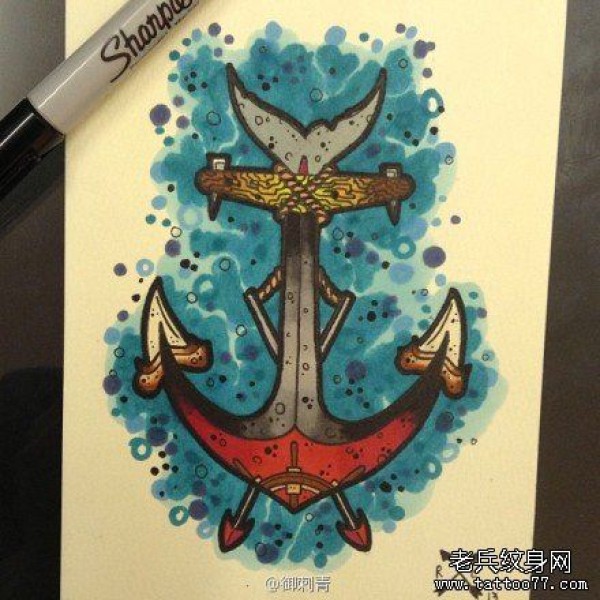 时尚时尚的一张船锚纹身手稿