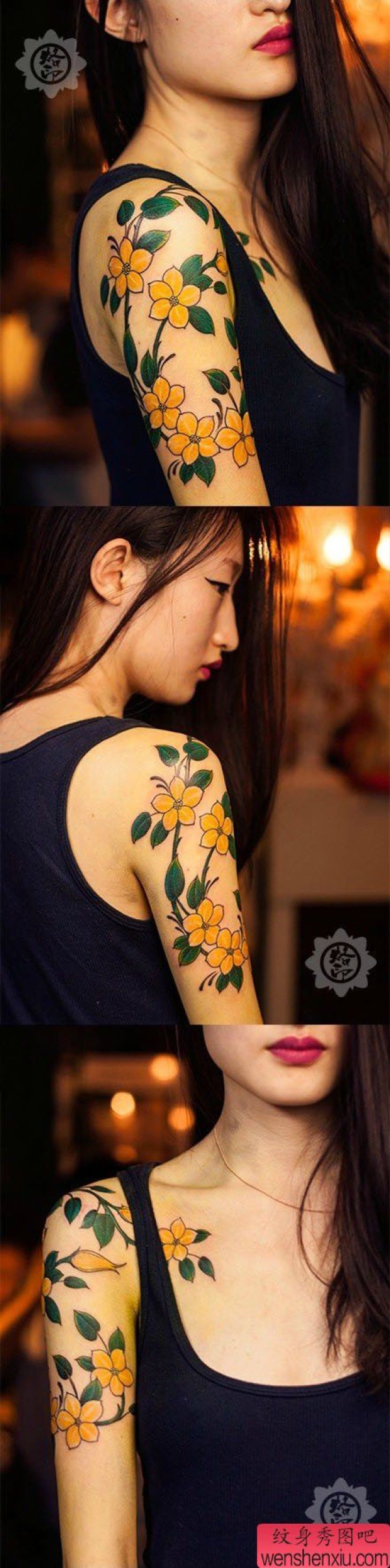 女生手臂漂亮精美的花卉纹身图案