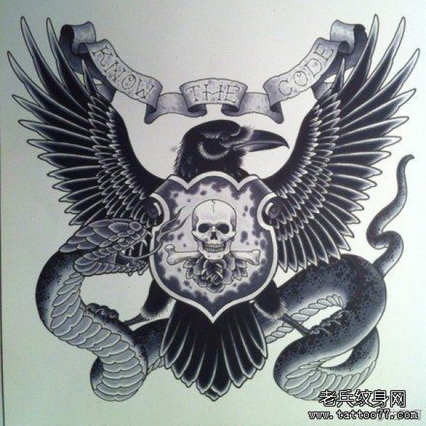 时尚很酷的一张老鹰与蛇纹身手稿