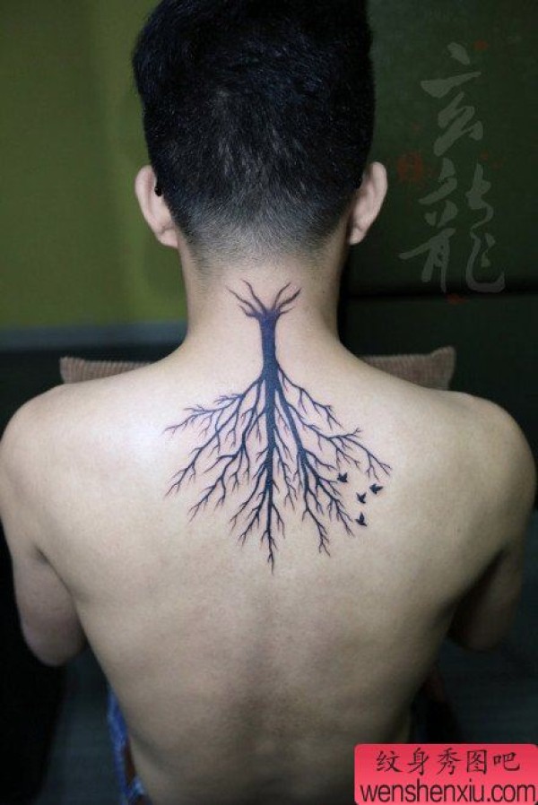 后背时尚时尚的图腾树纹身图案