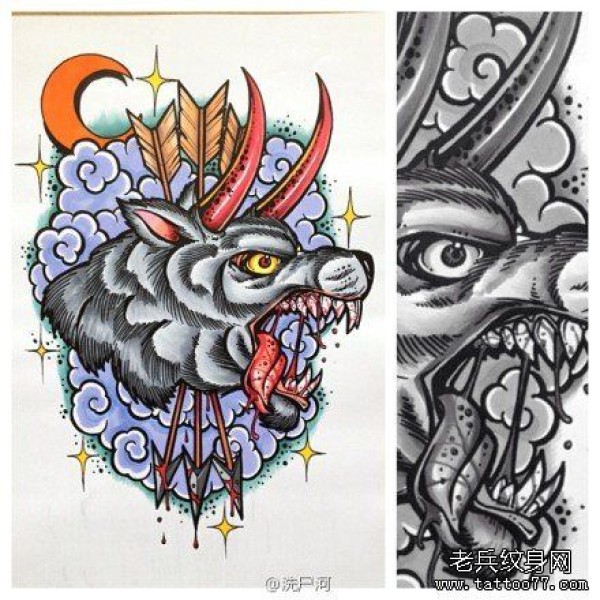 一组18张漂亮的欧美newschool动物纹身手稿图案
