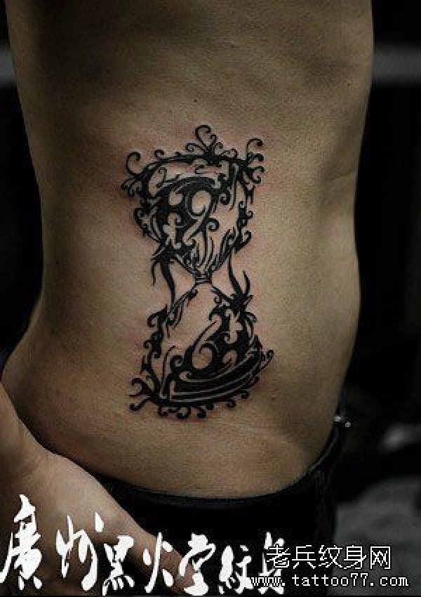 男生侧腰时尚经典的图腾沙漏纹身图案