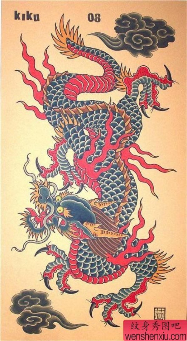 龙纹身手稿_一组老传统黑灰龙手稿纹身图案