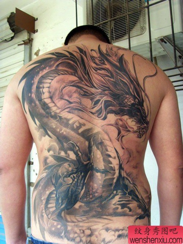龙纹身手稿_一组老传统黑灰龙手稿纹身图案