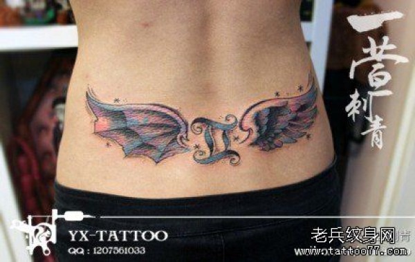 后背精美的天使与恶魔翅膀纹身图案