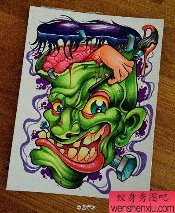 另类很帅的一张鬼头纹身手稿