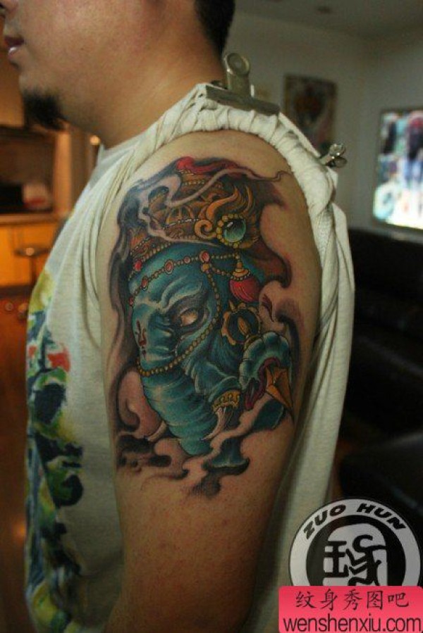 手臂很帅超酷的象神纹身图案