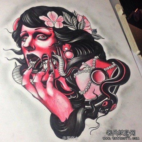 另类很酷的一张欧美美女与蛇纹身图案