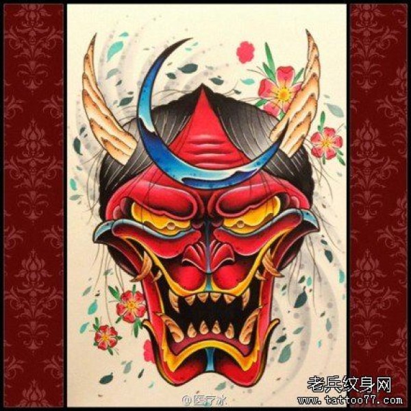 能面万媚纹身手稿_52张日式能剧面具纹身手稿图案素材欣赏