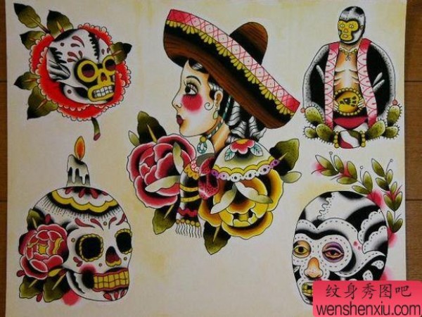 能面万媚纹身手稿_52张日式能剧面具纹身手稿图案素材欣赏