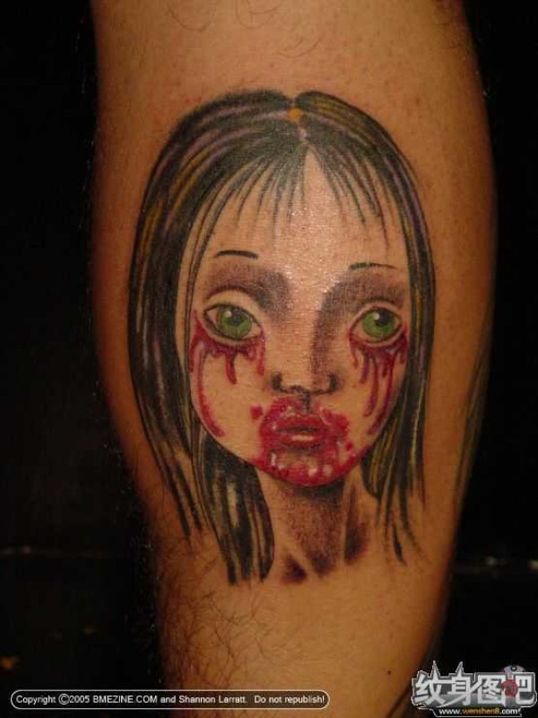 眼睛流血眼神幽怨的鬼娃娃纹身