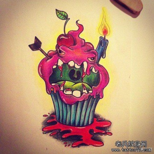 简单时尚的一张冰激凌纹身手稿