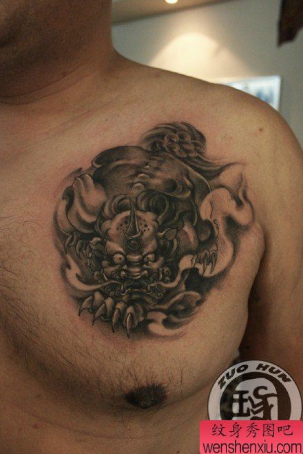 男士前胸时尚很帅的貔貅纹身图案
