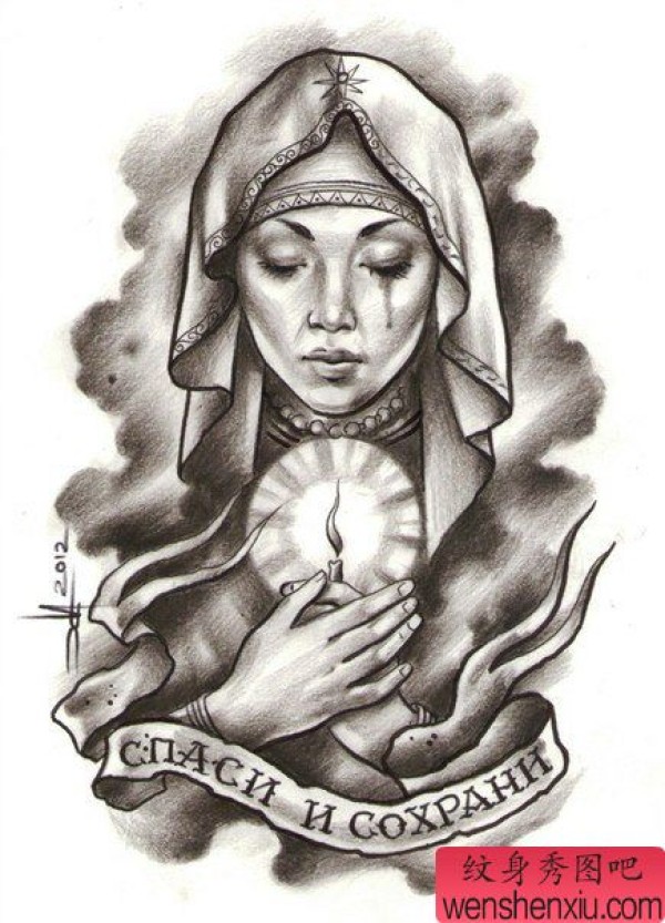 给大家一张圣母纹身手稿