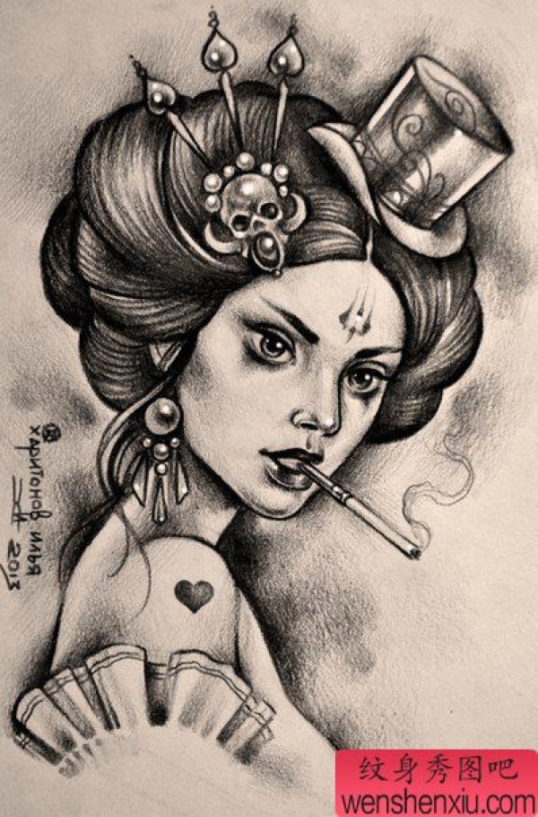 能面万媚纹身手稿_52张日式能剧面具纹身手稿图案素材欣赏