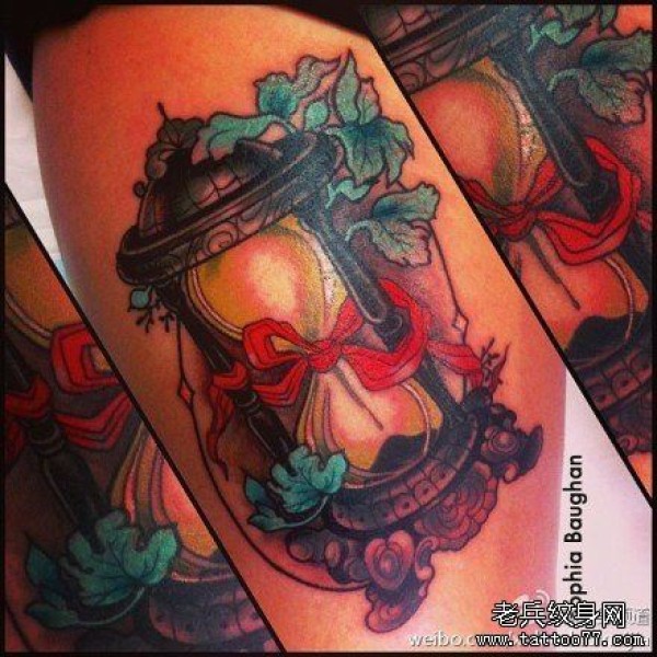 腿部时尚精美的沙漏纹身图案