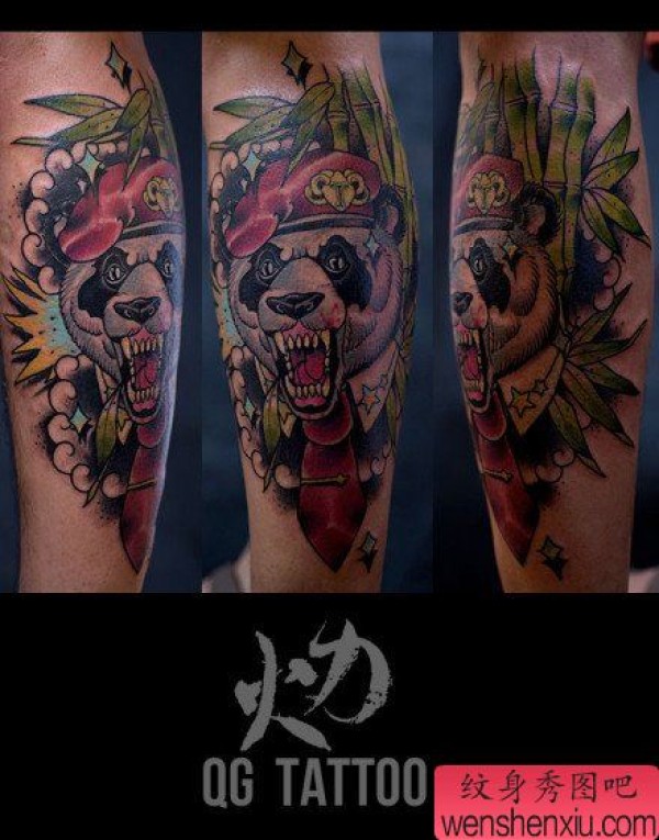 腿部超帅很酷的熊猫纹身图案