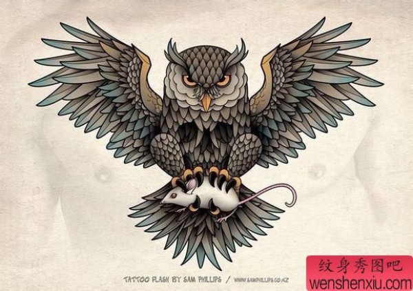 时尚时尚的一张黑白猫头鹰纹身手稿