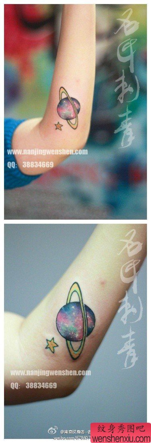 女生手臂精美的星空小星球纹身图案