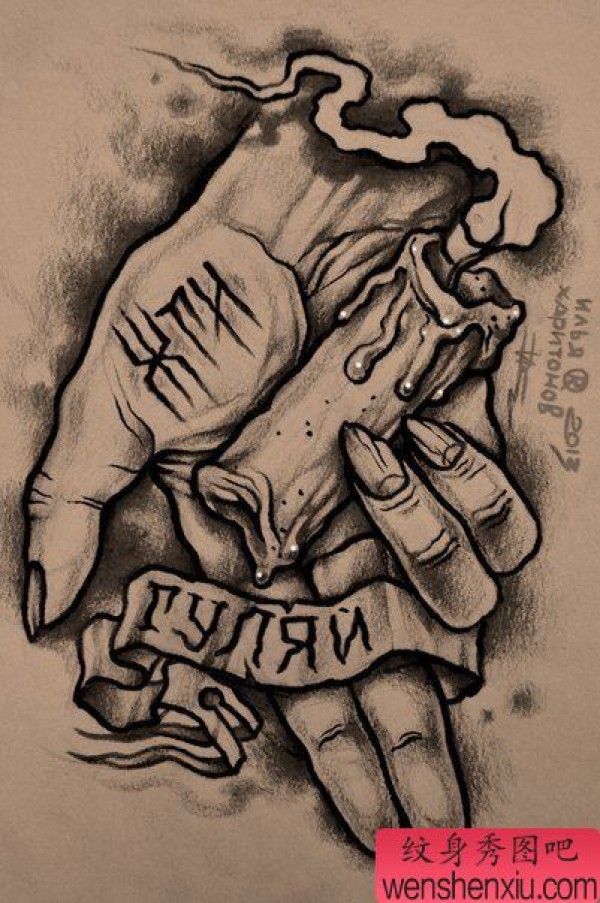 一张个性的手蜡烛纹身图片