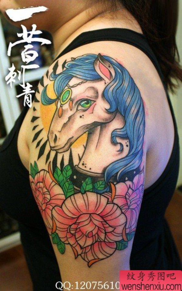 手臂时尚精美的马纹身图案