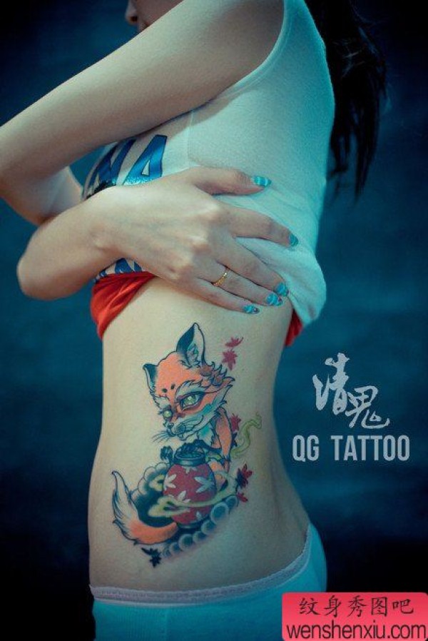美女腰部时尚时尚的狐狸纹身图案