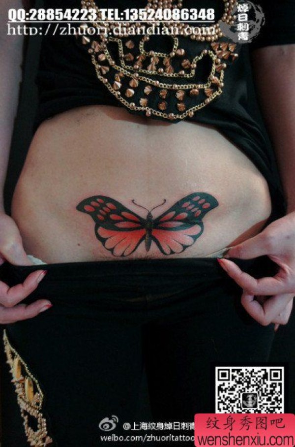 美女腹部唯美漂亮的蝴蝶纹身图案