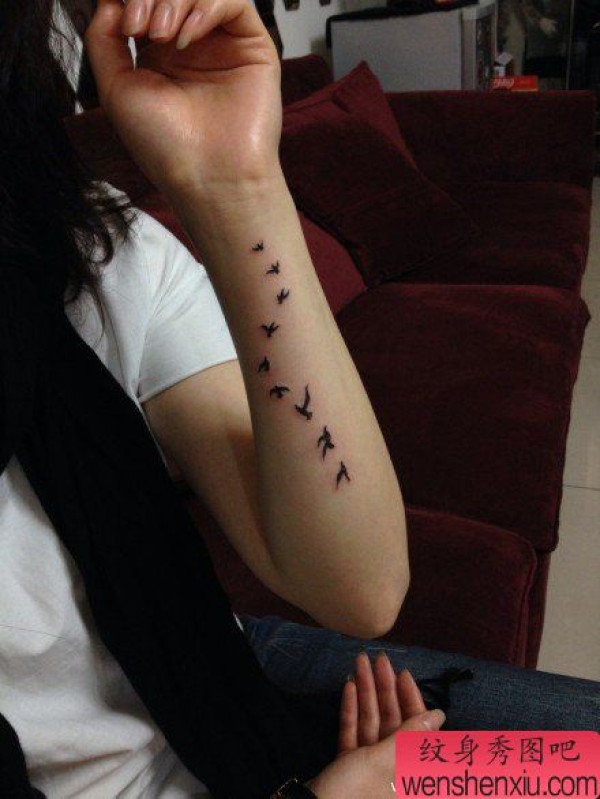 手臂小巧时尚的小鸟纹身图案