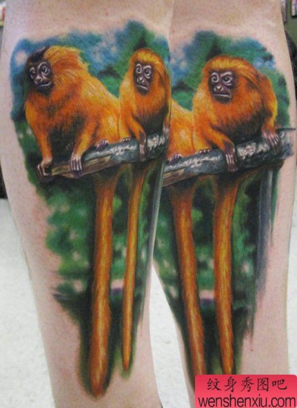 一张逼真的金丝猴纹身图案