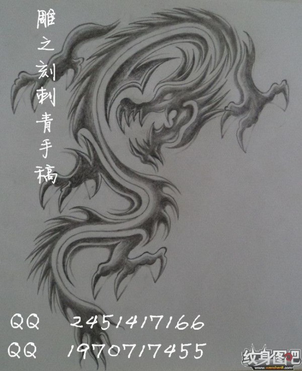 龙纹身手稿_一组老传统黑灰龙手稿纹身图案