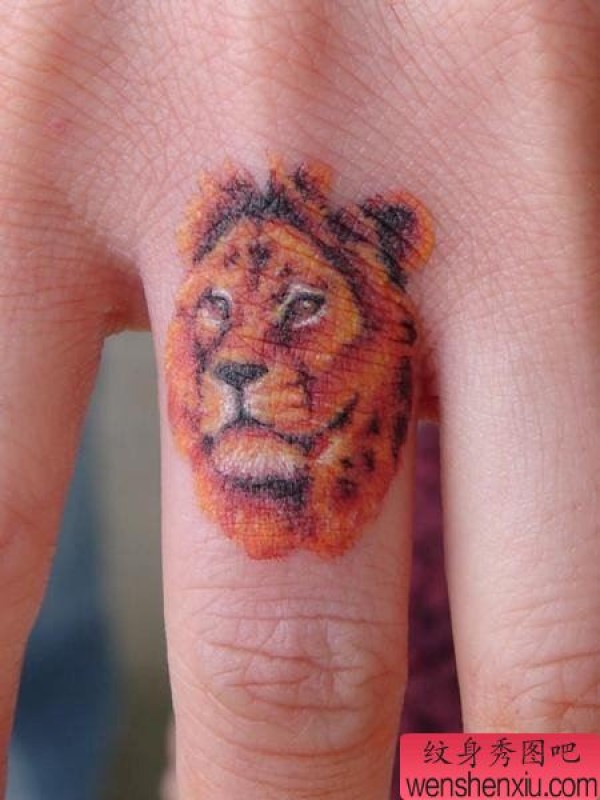 手指上一张简约狮子头纹身图案