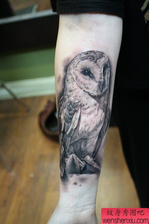分享小臂上一张猫头鹰纹身图片