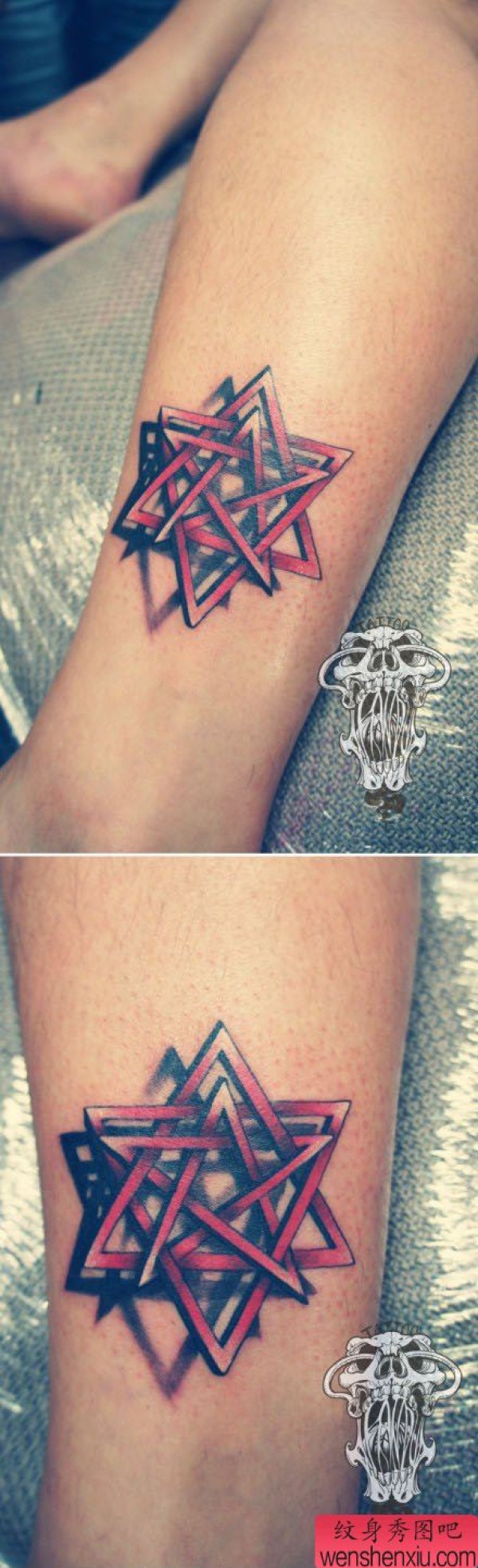 腿部小巧唯美的五芒星与六芒星纹身图案