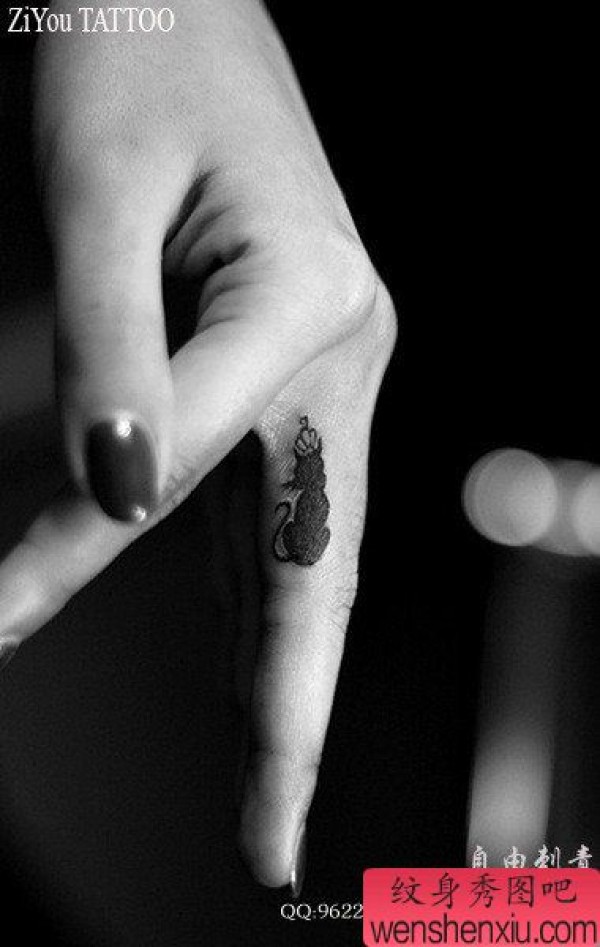 手指可爱小巧的猫咪纹身图案