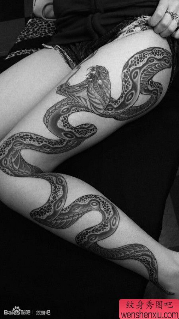 美女腿部时尚很帅的蛇纹身图案